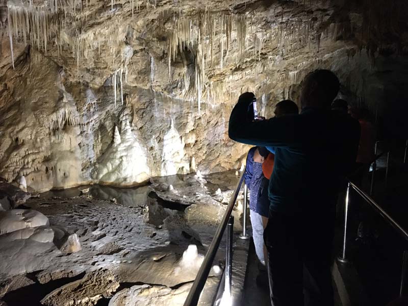 Kolejne etapy zwiedzania następowały bez żadnych problemów, chociaż w pewnym momencie nachylenie podłoża było dość strome i wskazana była asekuracja, aby nie wypaść z wózka inwalidzkiego. Całe oprowadzanie nas po jaskini trwało około godziny i naprawdę trzeba być ciepło ubrany, aby tam nie zmarznąć.