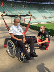 Moje obawy, czy tak poważna niepełnosprawność, jak porażenie czterokończynowe nie będzie przeszkodą, okazały się nieuzasadnione. W pewnym sensie tetraplegia była atutem, ponieważ jeszcze nikt taki nie skorzystał ze skoku wahadłowego i było to także wyzwanie dla organizatora. Wcześniejsze osoby na wózkach inwalidzkich miały ręce sprawne i mogły przytrzymać się nimi na huśtawce. U mnie nie było takiej możliwości i dlatego zdecydowano się na hamak.